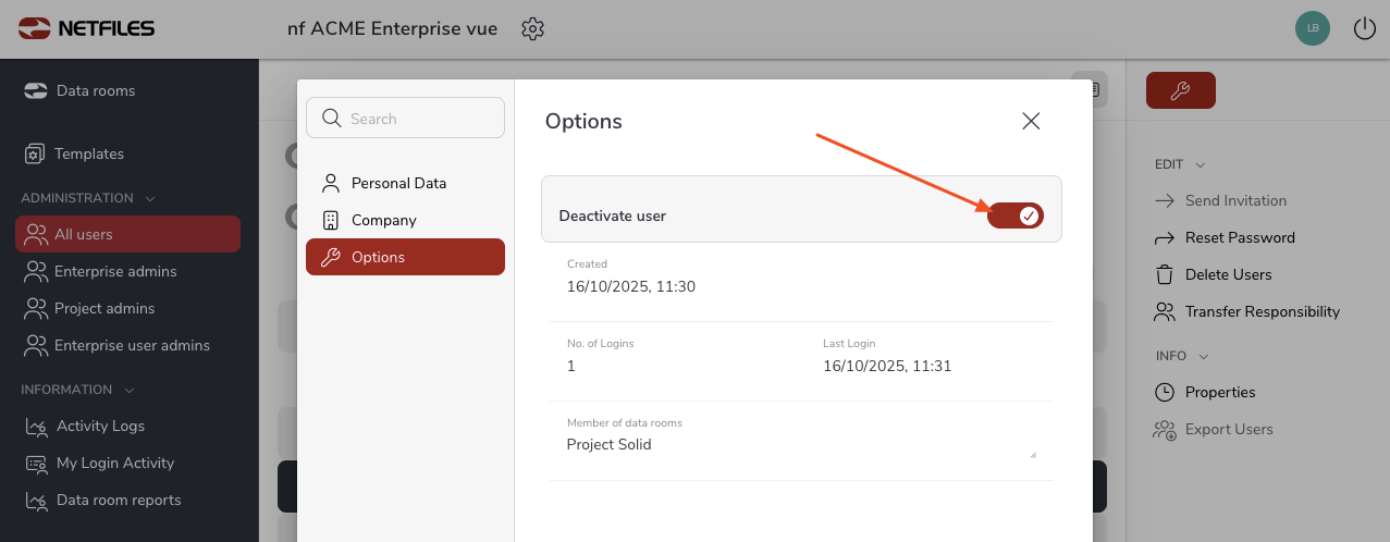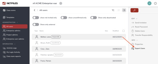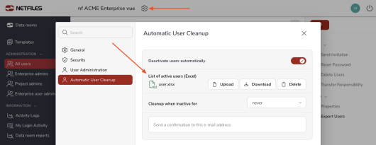 Automatic user synchronization with an xls file netfiles Enterprise Data Room Premium
