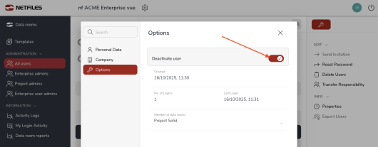 - How can I restrict user access or data room access in terms of time? (Admin)
