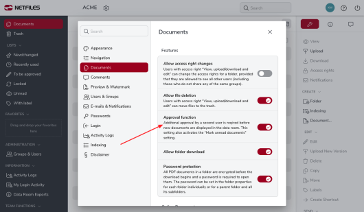 This feature is only available in netfiles Data Room Premium and netfiles Data Vault.