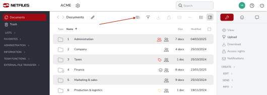 As soon as you enter a letter in the open “Filter function”, netfiles immediately filters the displayed files and folders and shows you the result.