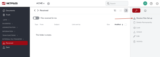 Receive file – External file transfer (secure file transfer)