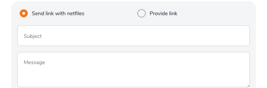 Finally, select whether the link should be sent with netfiles or provided to you. You can optionally add a subject and a message.