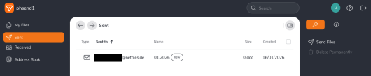 For a good overview of the files sent and the accesses, you can store your files securely under “My files” and send them multiple times from there. Even if you make changes to the files or folders after sending, the recipient will always receive the latest version. Drag the desired file or folder to the left-hand send area or check the file/folder and click on “Send file” at the bottom right.