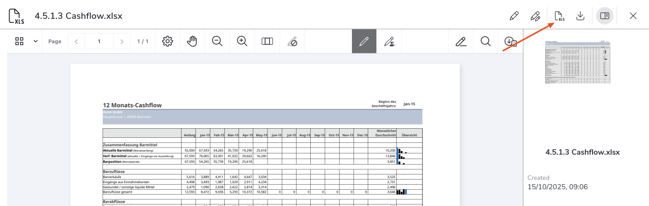 With the original file format preview enabled, users can switch between the original view and the PDF version in the preview window. Clicking on the file name opens the original file format preview. You can switch to the PDF preview in the top right corner.