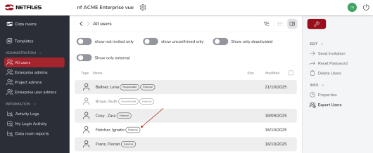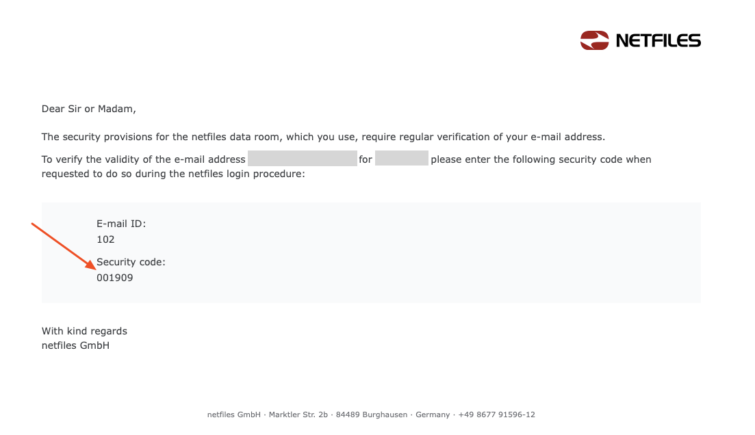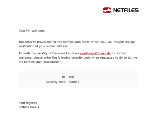 Verification of external e-mail addresses netfiles Enterprise Data Room Premium