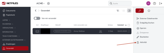 Aktivitätsprotokoll Externer Dateitransfer (Sicherer Dateiversand)