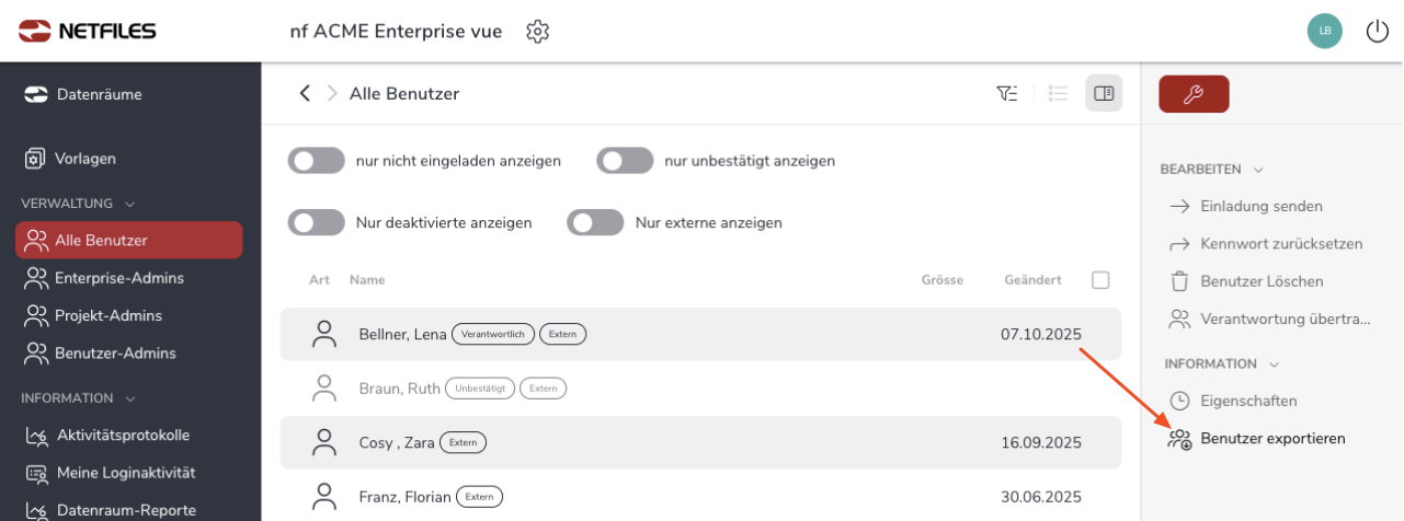 - Benutzerverwaltung netfiles Enterprise, Data Room Premium