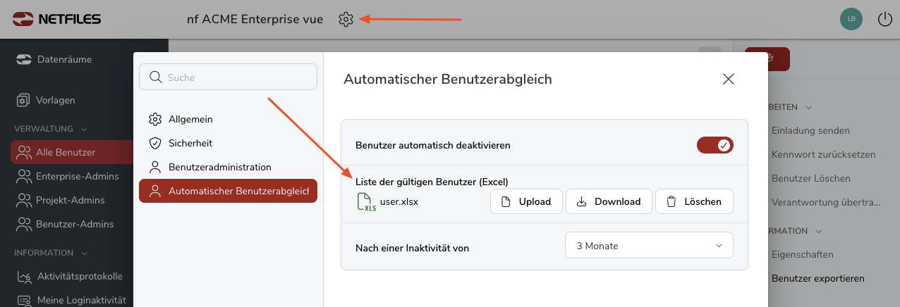 - Automatischer Benutzerabgleich mit einer xls Datei netfiles Enterprise Data Room Premium
