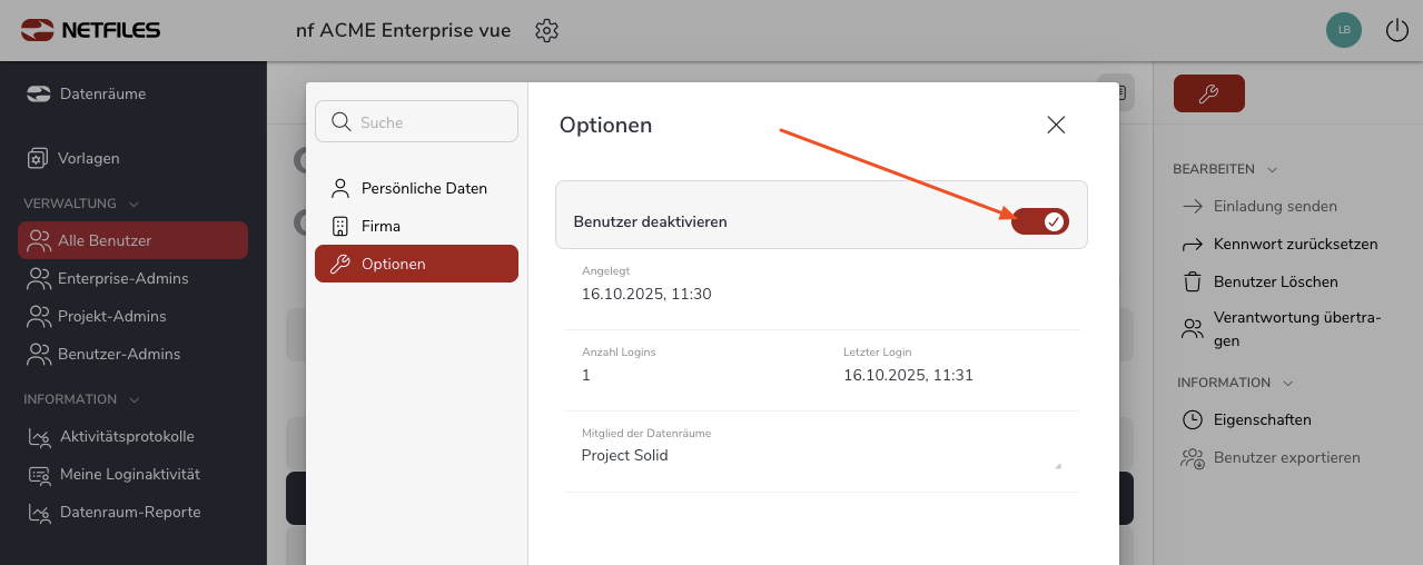 - Einrichtung automatische Deaktivierung von Benutzern netfiles Enterprise, Data Room Premium