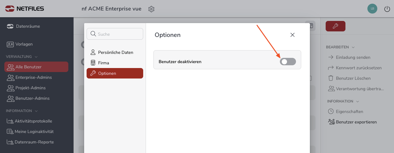 Benutzerverwaltung (netfiles Enterprise, Data Room Premium)