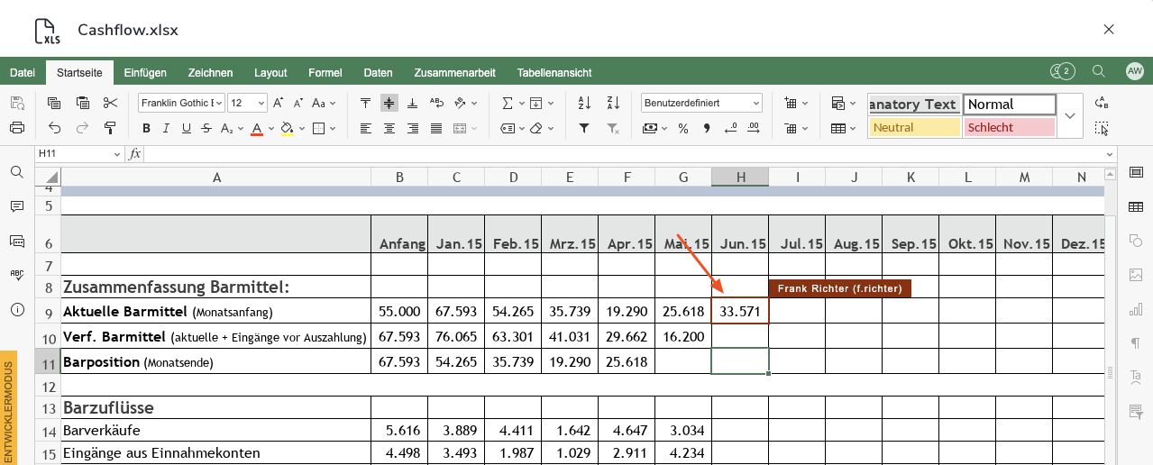 Jede Änderung wird sofort gespeichert und während der Bearbeitung wird angezeigt, was andere Benutzer geändert haben.