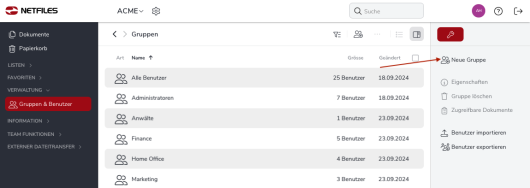 Im nächsten Schritt können Sie nun für die erstellten Gruppen Zugriffsrechte setzen.